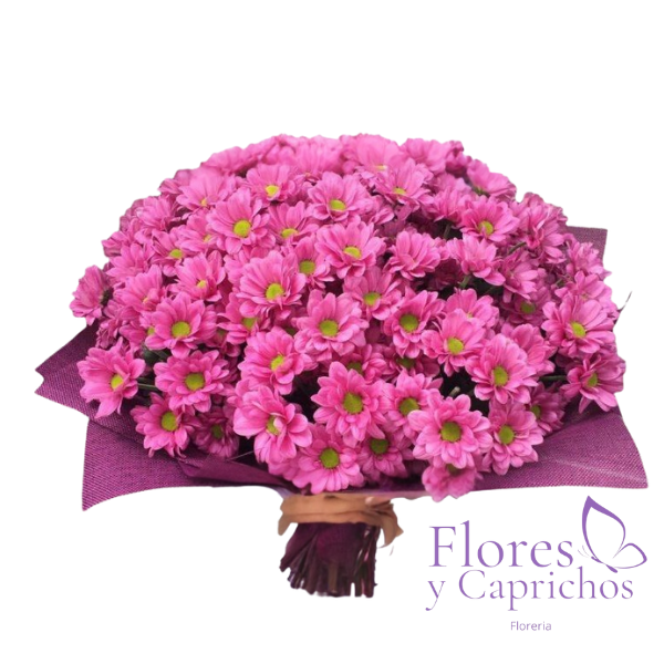 Lindo ramo buchon en maule margarita lila con fina envoltura de papel coreano mas lazo con cinta de tela