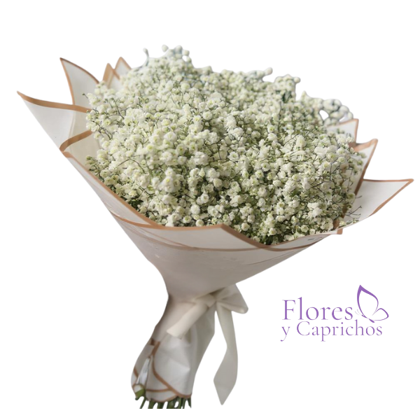 Lindo ramo con gipsófila en fina envoltura de papel coreano mas lazo.